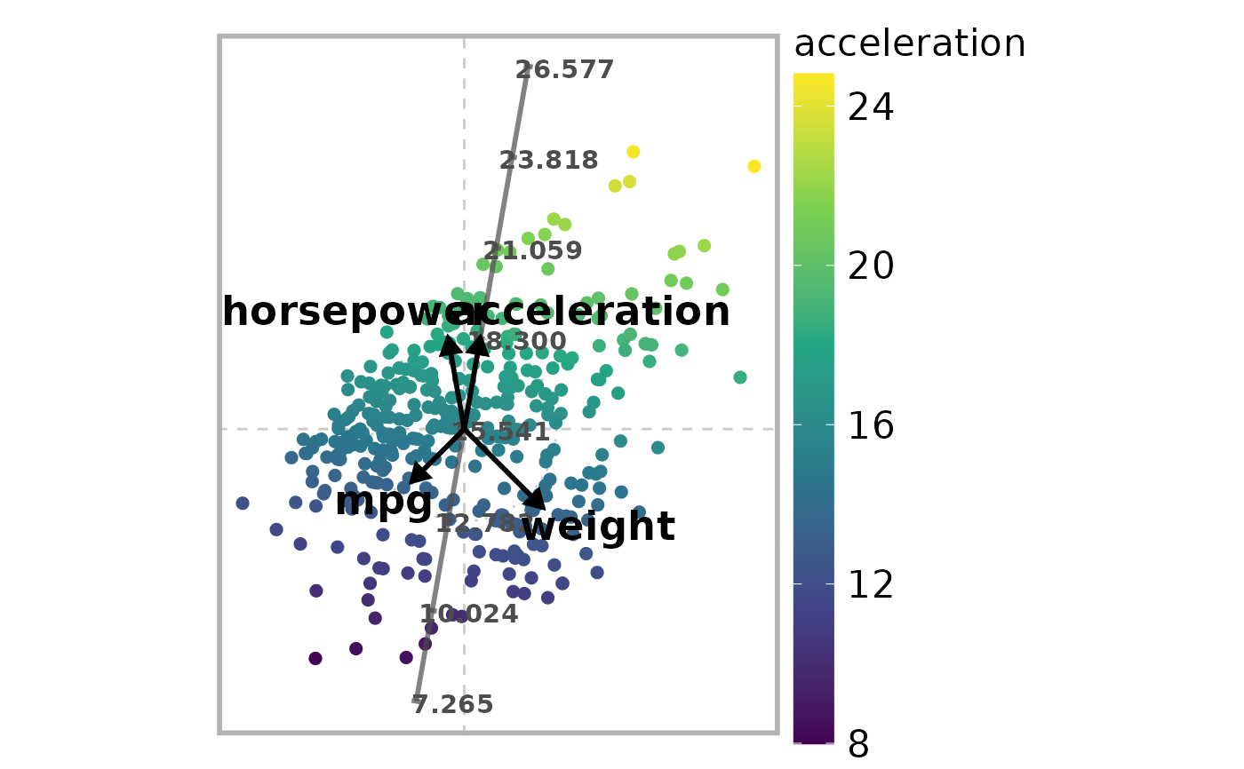 # 1:"mpg", 4:"horsepower", 5:"weight", 6:"acceleration"