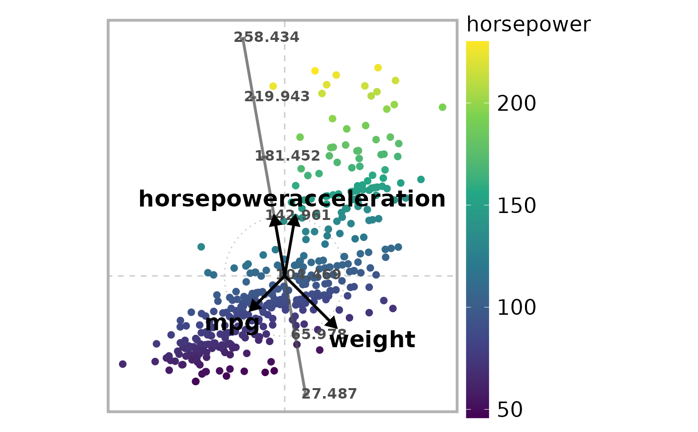Numeric matrix defining the axes or "axis vectors". Its dimensions are n x m, where 1<=m<=3 is the dimension of the visualization space. Each row of