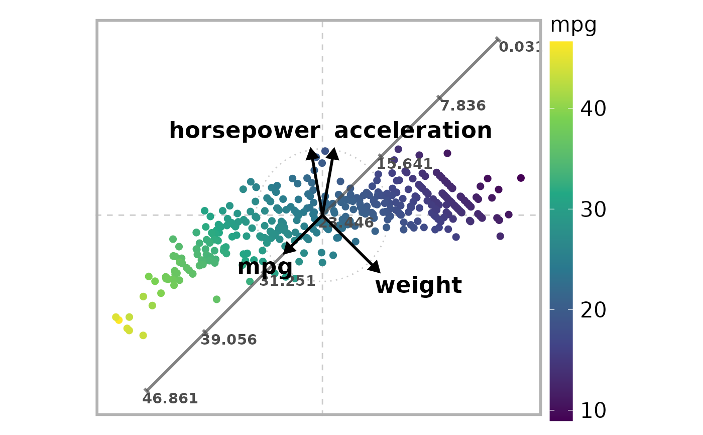 # 1:"mpg", 4:"horsepower", 5:"weight", 6:"acceleration"